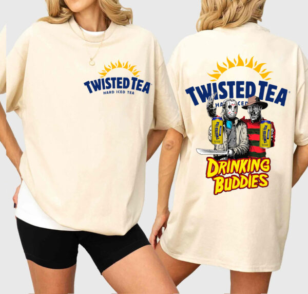 Jason Voorhees And Freddy Krueger Drink Twisted Tee PNG, Drink Buddies Horror Sublimation PNG