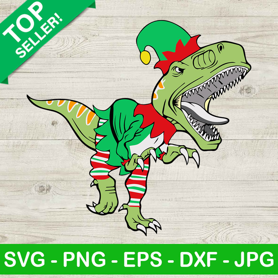 Elf Dinosaur Christmas SVG, T Rex Christmas SVG, Elf Dinosaur SVG