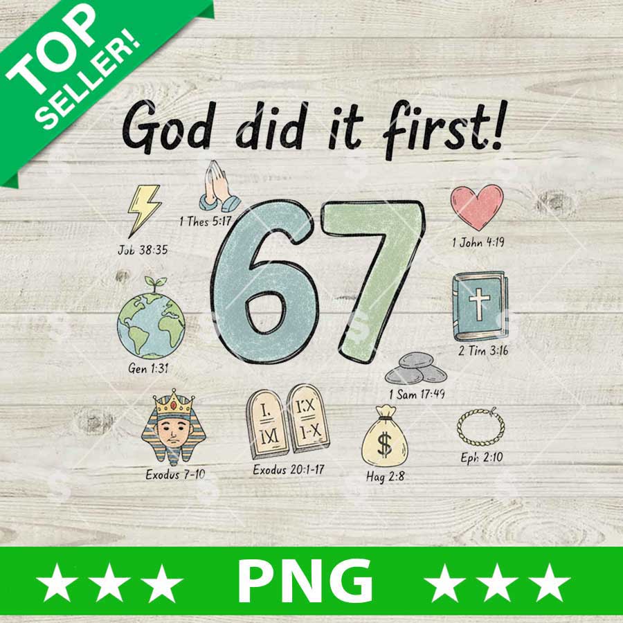 - This item: God Did It First Six Seven PNG, God 67 Funny PNG, Jesus 67 Bible Verse PNG Sublimation Original price was: $5.99.$3.50Current price is: $3.50.