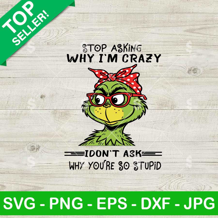 Stop Asking Why I’m Crazy I Don’t Ask SVG, Crazy Grinch SVG, Grinch Sassy Stupid SVG