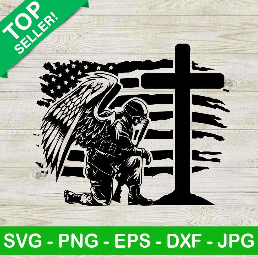 USA kneeling at cross SVG, American soldier SVG, Fallen soldier SVG